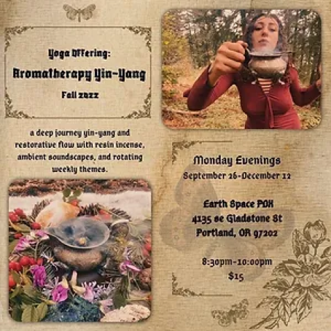 A deep journey of yin yoga and restorative flow with resin incense, ambient soundscapes, and a rotating weekly theme.